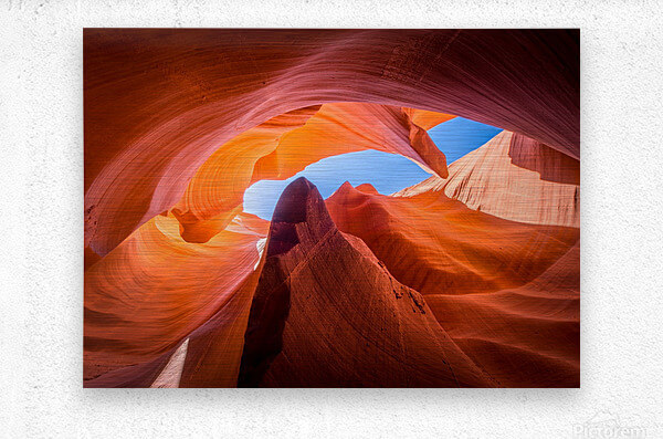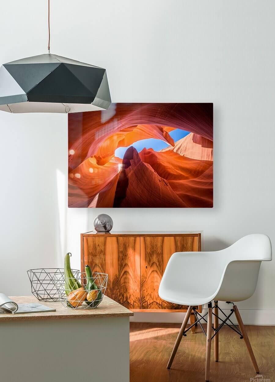 We print our digital metal prints using a flat bed printer. The metal sits on a large printing table and the image is created by printed specialty ink directly onto the front of the metal panel. The printer head goes back and forth until the image is totally finished. The material used is A 3/16 ” Dibond. Digital Metal prints can be ordered in white or brushed metal with or without varnish. Display options available are float, standoff, float frame and box. Even better, digital metal poster can also be ordered in custom sizes up to 60-96 inches.